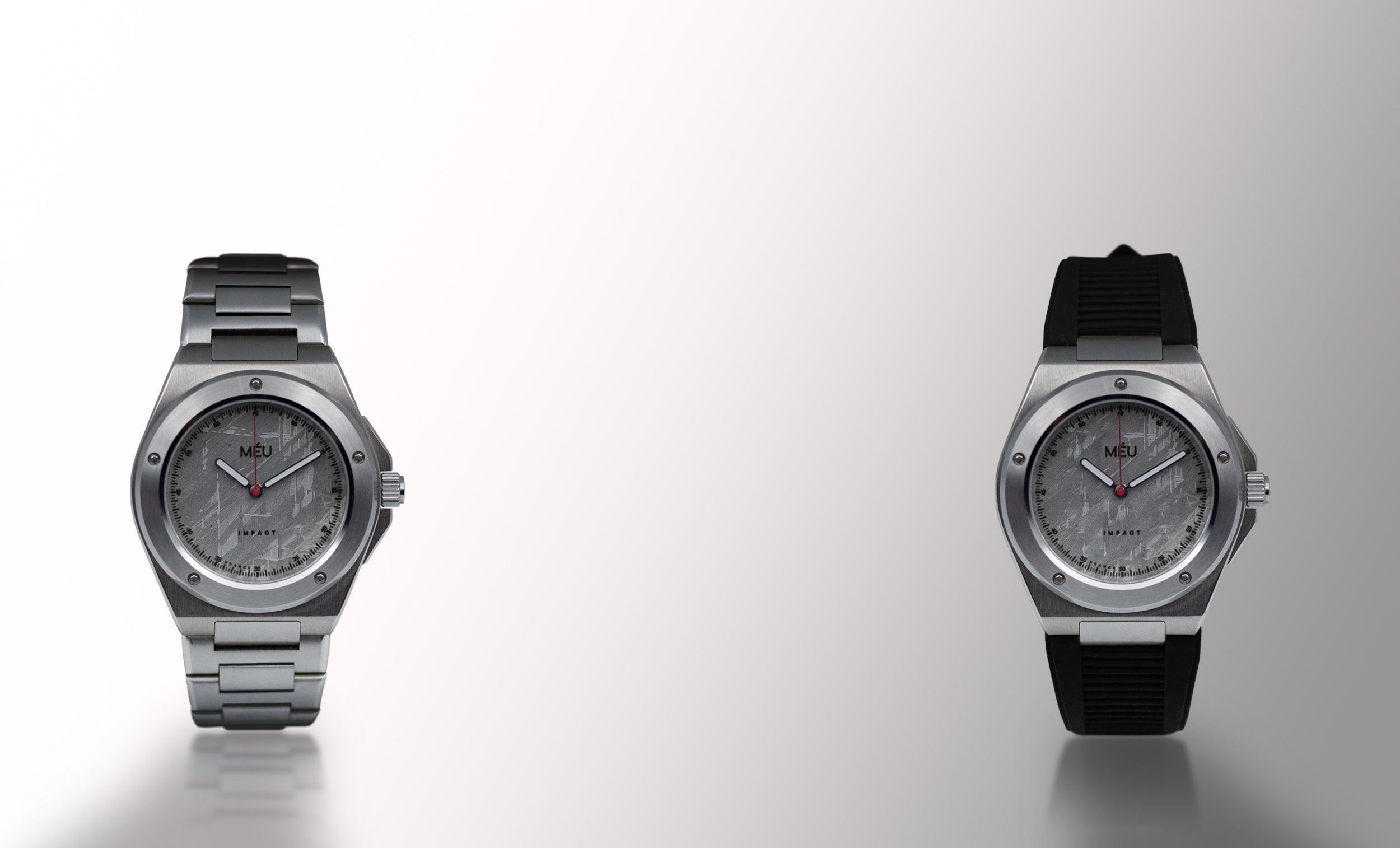 Au cœur de chaque MÉU IMPACT se trouve un fragment de météorite tombée sur Terre il y a près de 110 000 ans. Ses motifs cristallins, appelés figures de Widmanstätten, sont impossibles à recréer par l'homme. Aucun cadran ne sera jamais identique au vôtre.