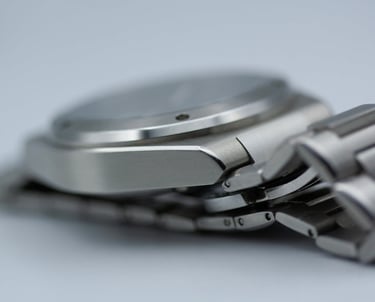 Le design de la MÉU Impact est une étude de la fluidité. Protégé par un verre saphir inaltérable, le boîtier se fond dans son bracelet intégré pour créer une ligne unique et continue. Chaque ligne, alternant surfaces polies et brossées, est pensée pour le confort et le jeu de lumière. L'ensemble n'est pas une montre assemblée, mais bien une sculpture d'acier pensée comme un tout.