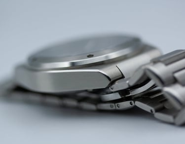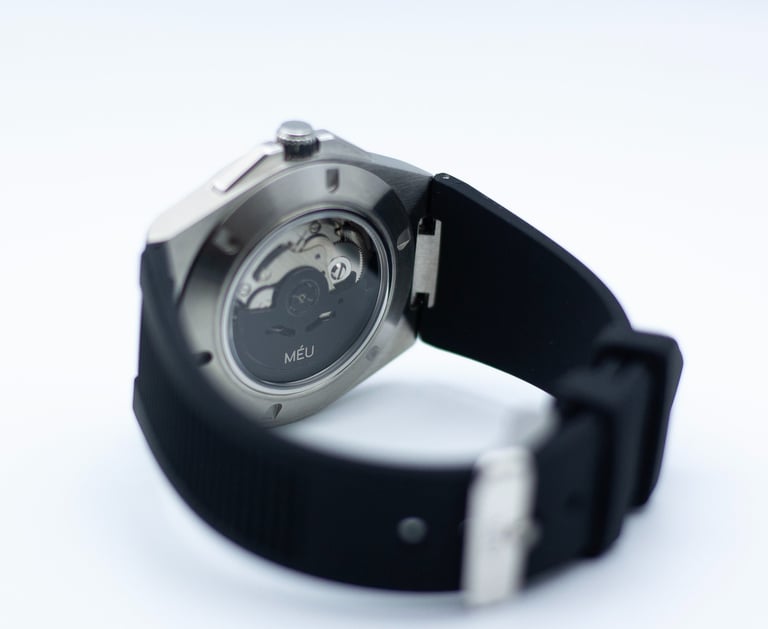 Le design de la MÉU Impact est une étude de la fluidité. Protégé par un verre saphir inaltérable, le boîtier se fond dans son bracelet intégré pour créer une ligne unique et continue. Chaque ligne, alternant surfaces polies et brossées, est pensée pour le confort et le jeu de lumière. L'ensemble n'est pas une montre assemblée, mais bien une sculpture d'acier pensée comme un tout.