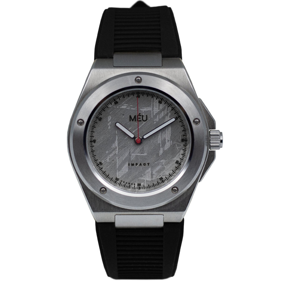 Oubliez tout ce que vous pensiez savoir sur le design horloger. L'Impact fusionne la souplesse et la douceur du silicone à l'âme mystérieuse d'un authentique cadran en météorite. Une pièce de caractère, conçue en France, unique comme vous.